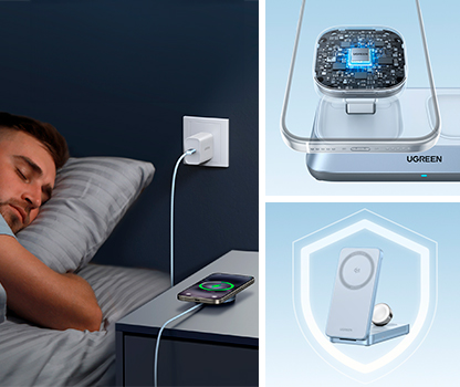 — Беспроводное зарядное устройство UGREEN W757 для одновременной беспроводной зарядки iPhone, AirPods и Apple Watch.