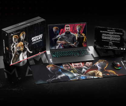 Atomic Heart — это приключенческий шутер от первого лица, события которого разворачиваются в альтернативном Советском Союзе 50-х годов, достигшем невероятных технологических высот. Ноутбук MAIBENBEN X16B полностью передает уникальную атмосферу игры. Он выполнен в черном алюминиевом корпусе. На верхней крышке размещены логотипы Maibenben и Atomic Heart, а также одни из самых узнаваемых персонажей — Близняшки. Рисунки также нанесены на рабочую поверхность: слева от тачпада выгравирована эмблема игры, а клавиши клавиатуры украшены тематическими пиктограммами. Комплект поставки дополнен фирменной компьютерной мышью и полноразмерным ковриком с портретами главных героев.