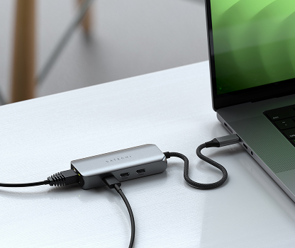 Концентратор Satechi превращает один USB-C порт в четыре разъёма: три порта USB-C 3.2 Gen 2 для быстрой передачи данных (до 10 Гбит/с) и 2,5-гигабитный Ethernet для более стабильного соединения. Подключается сразу, без предварительной установки драйверов. Алюминиевый корпус перекликается с дизайном Neo, плетёный кабель с усиленным контактом рассчитан на долгую службу.